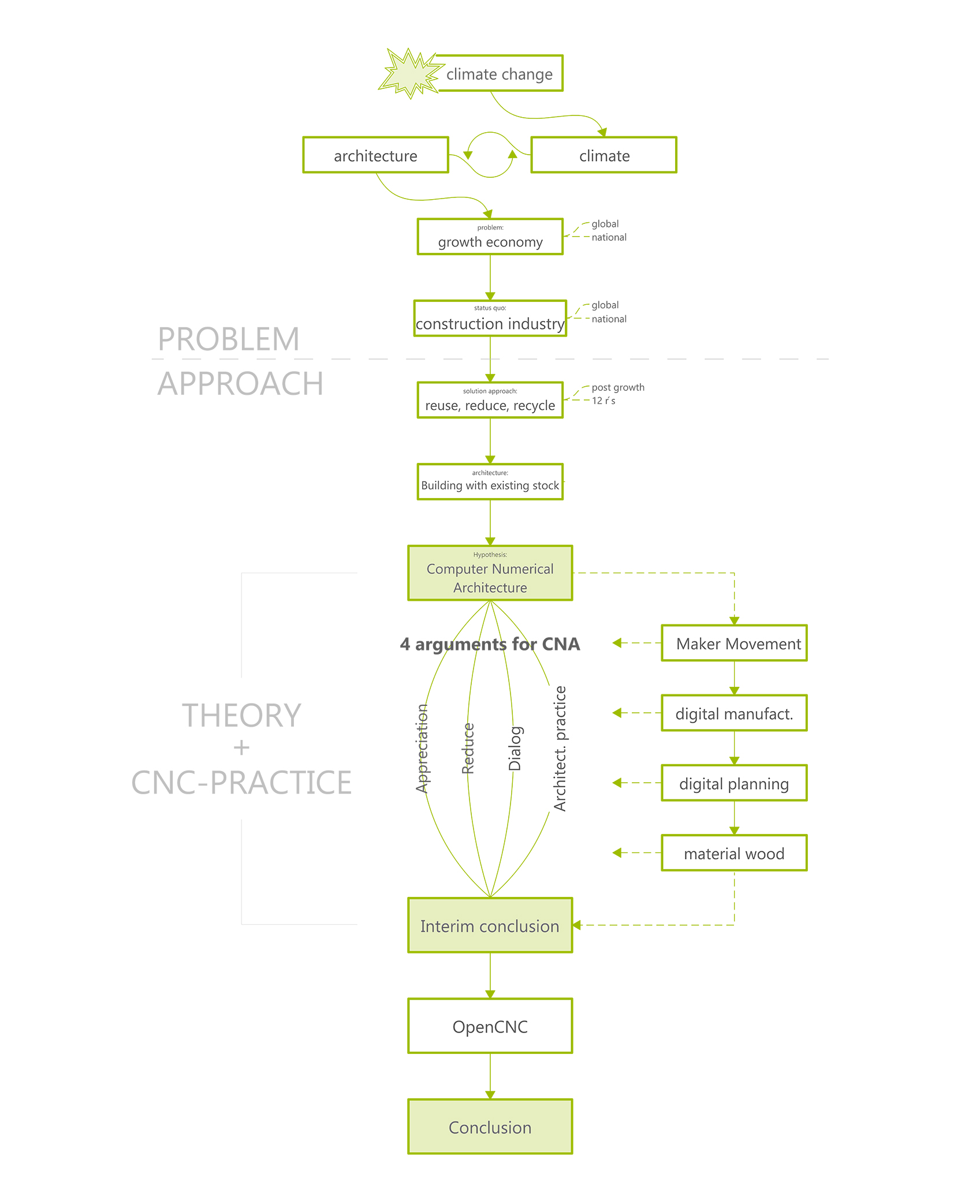 One answer to this question could be post-growth economics (degrowth), which assumes that decoupling economic growth and environmental degradation is not possible (fast enough) and therefore designs a society that is frugal and partially self-sustaining (1). Post-growth economists like Serge Latouche bring into play terms like reevaluation, reconceptualization, restructuring, redistribution, relocalization, reduction and recycling – summarized under the three generic terms Reduce / Reuse / Recycle, a strategy from waste management is applied here to a new kind of production that can lead to a sustainable future. The core of this strategy is to avoid consumption by consistently questioning, repairing and exchanging – and only reaching for a new product if there is no other way. This attitude can easily be applied to the production of architecture, which suggests a consideration of the existing.